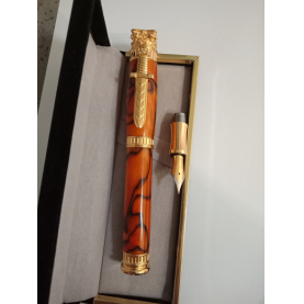 Big mother of a pen , Tiger pattern beautiful orange black, huge ink cartridge 22kt gold plating will never tarnish. Just a beatuful pen. Supplied in faux leather case