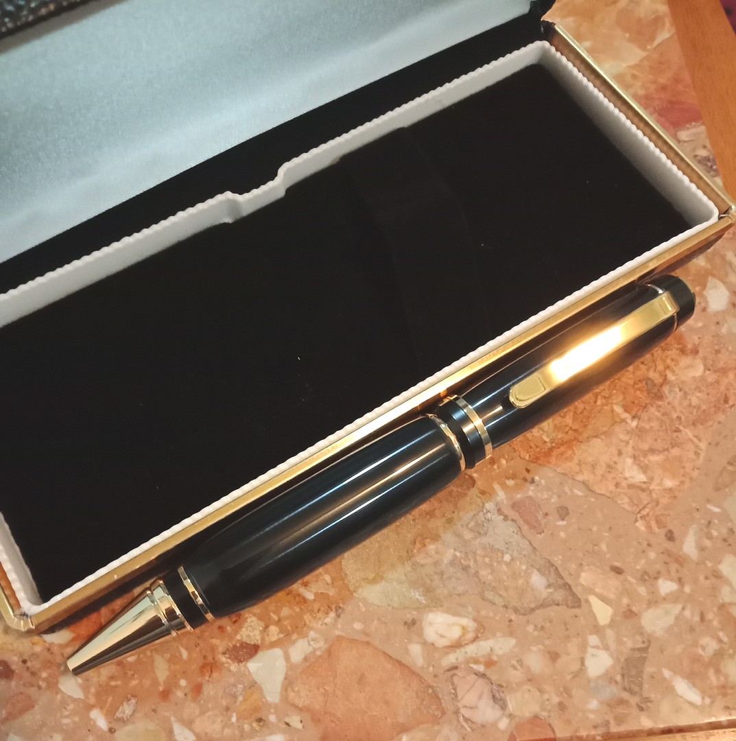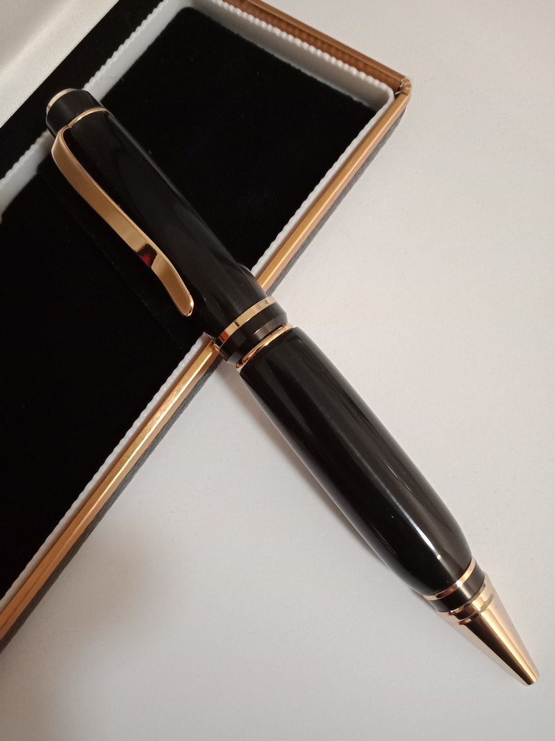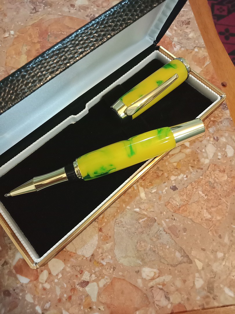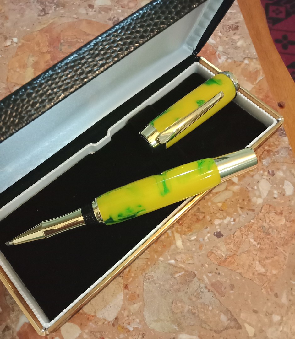 Bloody big pen, I made this pen with Gold Green resin combo. A 2 part pen finish in 22kt gold plating. This is a stand out pen in the Australian office. Hugh ink supply will last for years.
